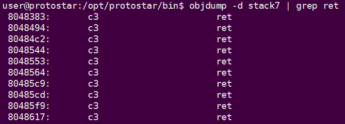 ret 가젯 구하기 objdump -d 옵션을 주고, grep으로 ret를 찾아주면 ret가젯을 쉽게 구할 수 있습니다.