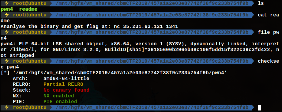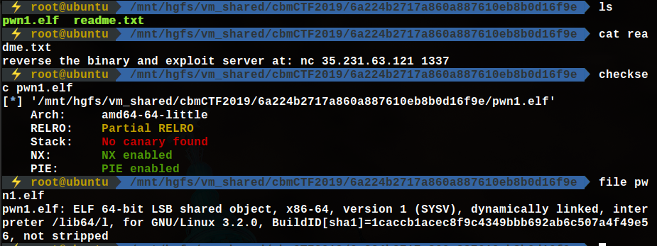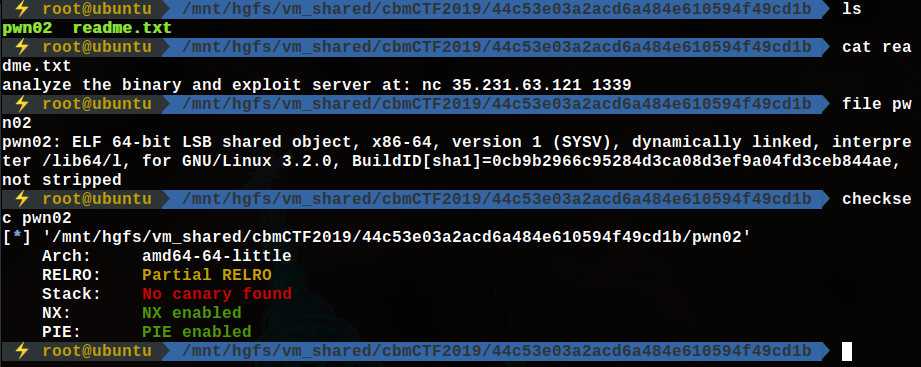 64bit 바이너리, NX와 PIE가 걸려있고 readme 파일을 읽었을 때 remote로 접속해서 쉘을 따야한다.