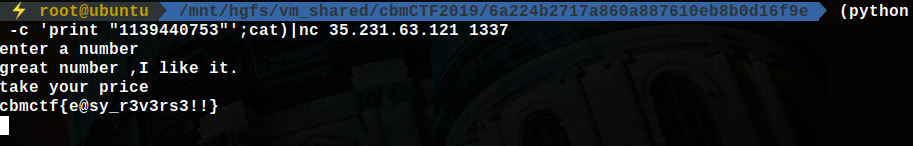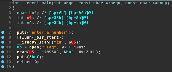 따라서 사용자 입력으로 v5에 1085645 + 3의 값을 넣어주면 flag가 열린다.