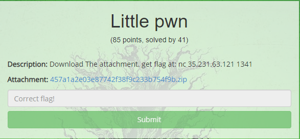 다음으로 풀어본 문제는 Little pwn이라는 문제다.