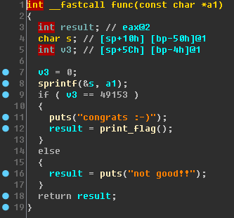 func()를 보면 v3가 49153과 같을 때 print_flag()를 호출시켜주는데