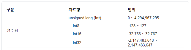 integer overflow를 위해 int 자료형의 범위를 알아보면 위 그림과 같이 나온다.