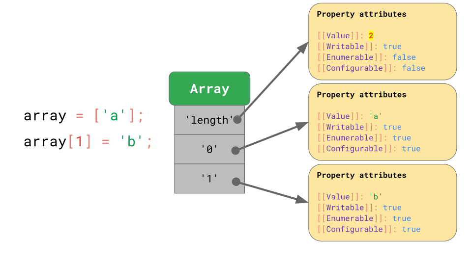 let array = ['a']; array[1] = 'b';array를 선언할 때는 'a' property 하나만 갖기 때문에 'length'의 값은 1이였지만