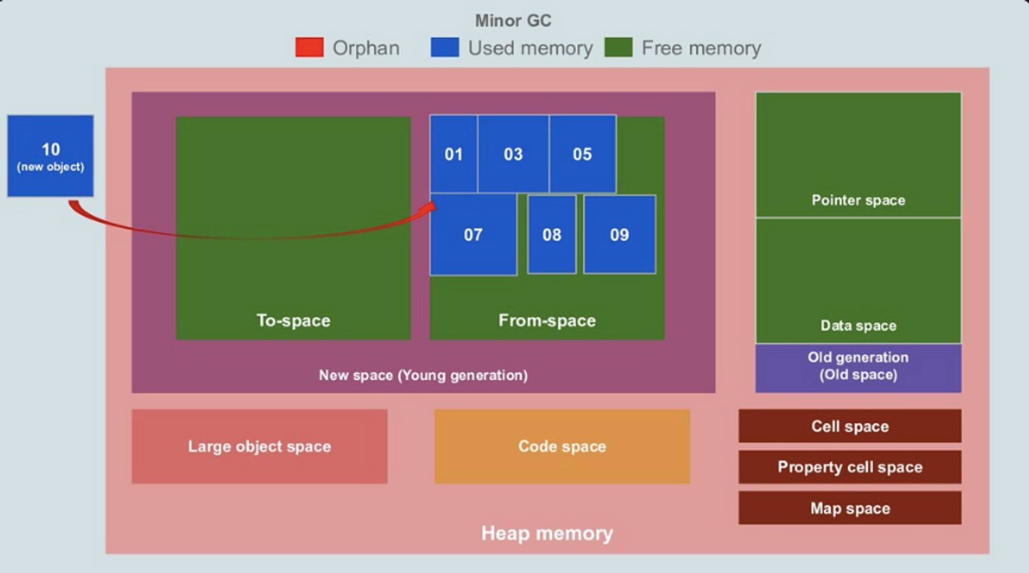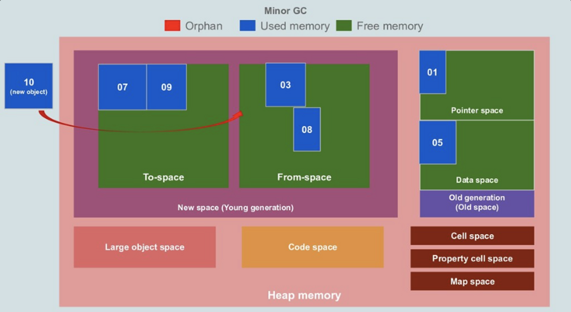 - Old pointer space : Minor GC에 의해 제거되지 않고 살아 남은 객체 들이며 이 객체들은 다른 객체를 참조함