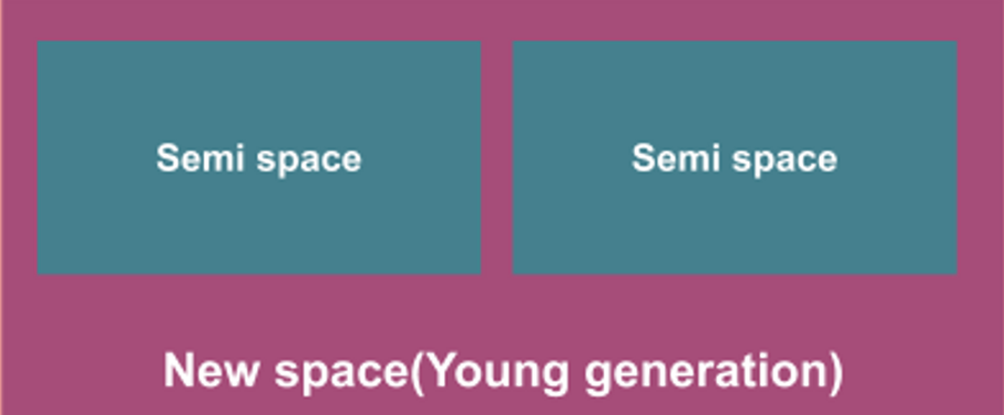 Heap - New Space(Young generation) - 새로운 객체가 할당되며 대부분의 수명이 짧음