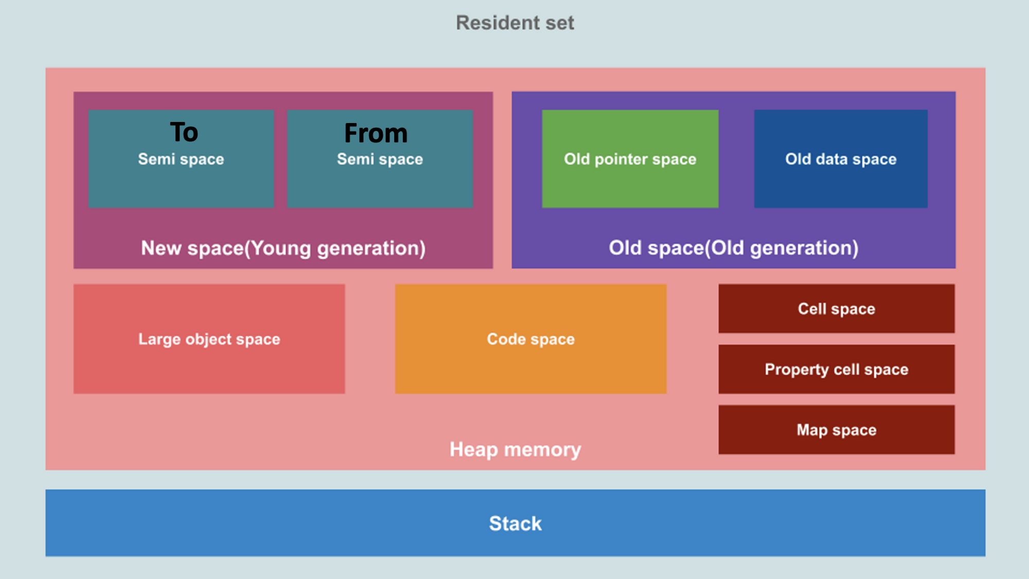 실행중인 프로그램은 V8 프로세스에서 할당된 일정량의 메모리로 표현되고, 이를 Resident set이라 한다.