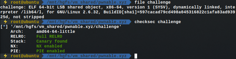 file, checksec 64bit ELF 바이너리이며 모든 보호기법이 적용되어있다.