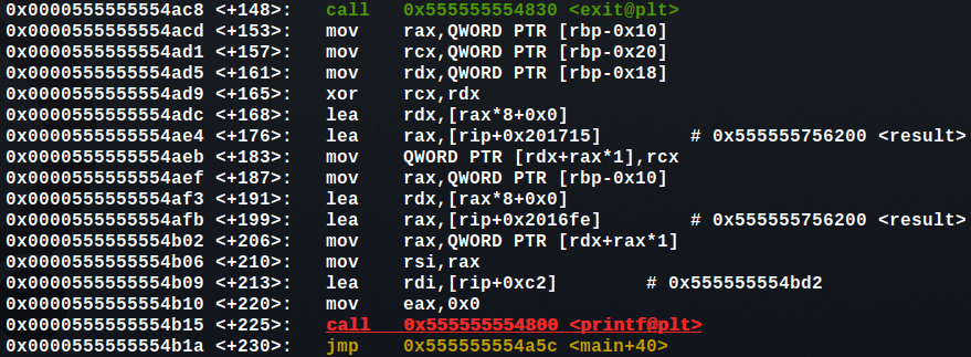 다음과 같이 [rdx+rax*1]이 <main+148>의 위치에 가있는 것을 확인할 수 있다.